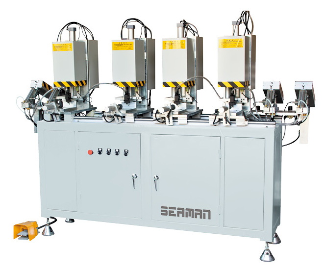 該機4個機頭可分別檢測并識別型材長度,使相應(yīng)機頭自動處于工作狀態(tài)。并在有失誤情況時,能自動將螺釘排出。